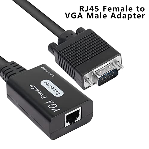 Adattatore con ripetitore di segnale VGA a RJ45, collegare 2 dispositivi con interfaccia VGA tramite Cat5e/6. Può estendere il segnale VGA a 60 m, utilizzare un cavo CAT5e/6 di alta qualità anziché un cavo VGA super lungo per ottenere la migliore qualità dell'immagine, ridurre i costi.