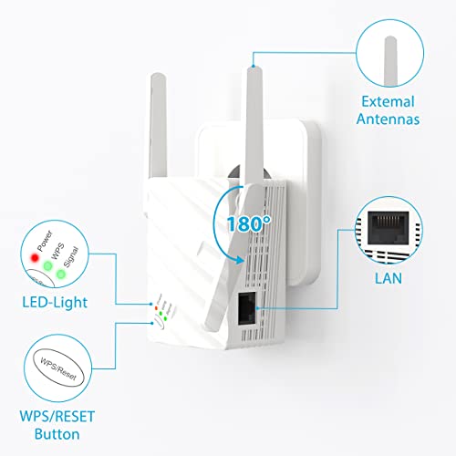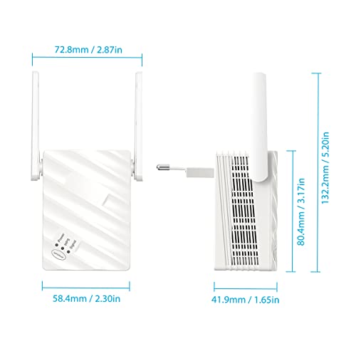 [Copertura Wi-Fi avanzata] Booster WIFI con due antenne esterne per un segnale più forte e una copertura più ampia, questo ripetitore WiFi 5GHz fornisce fino a 110 metri quadrati di gamma WiFi per collegare più dispositivi come smartphone, tablet, PC, altoparlanti, telecamere IP, spine intelligenti dispositivi echo / Alexa e altro ancora.