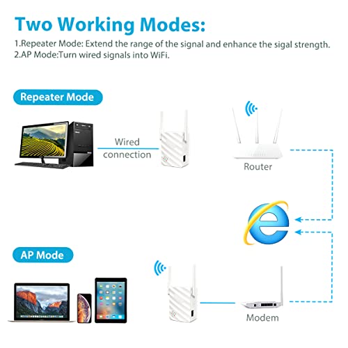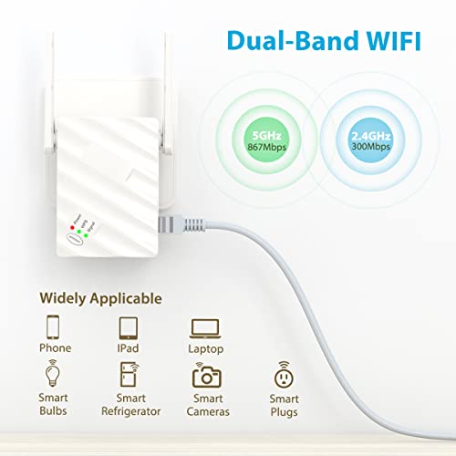 [Boost WiFi stabile] Questo amplificatore WiFi seleziona automaticamente una banda WiFi di qualità superiore per prestazioni migliori. Supporta velocità estese di 867Mbps su 5GHz Wi-Fi e 300Mbps sulla banda 2.4GHz. godere di streaming HD online, modalità multi-player, musica e altro. Riduzione della perdita di trasferimento dei dati