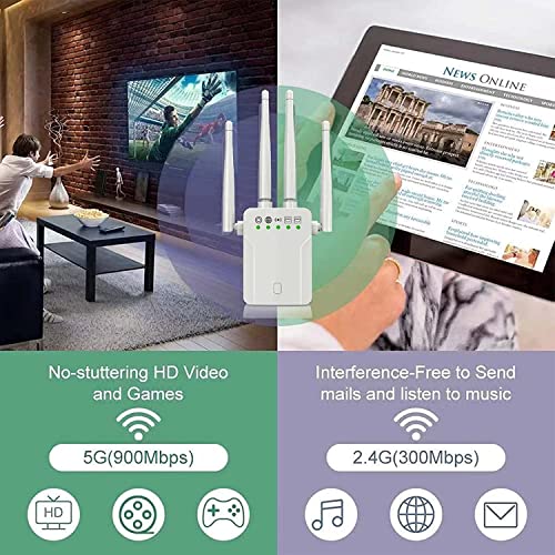 Ripetitore WiFi Wireless,1200 Mbit/s Amplificatore Segnale Wi-Fi Range Extender 5,8 GHz & 300 Mbps,2,4 GHz WiFi Repeater Portatile,WiFi Range Extender,ripetitore/modalità Access Point compatibile