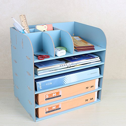 LM Ripiani Desktop Magazine Wood Creative Può Essere Assemblato Incorporato Ordina Più Spessi Cartella ( Colore: Blu )