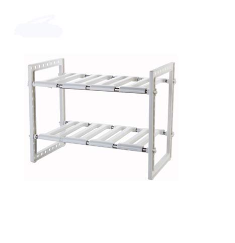 Ripiani Espandibile da Cucina Scaffale portaoggetti regolabile a 2 ripiani espandibile sotto il lavandino Scaffale Organizer Sottolavabo Mensola Portaoggetti Estendibile da 38 a 69 cm (Bianco)