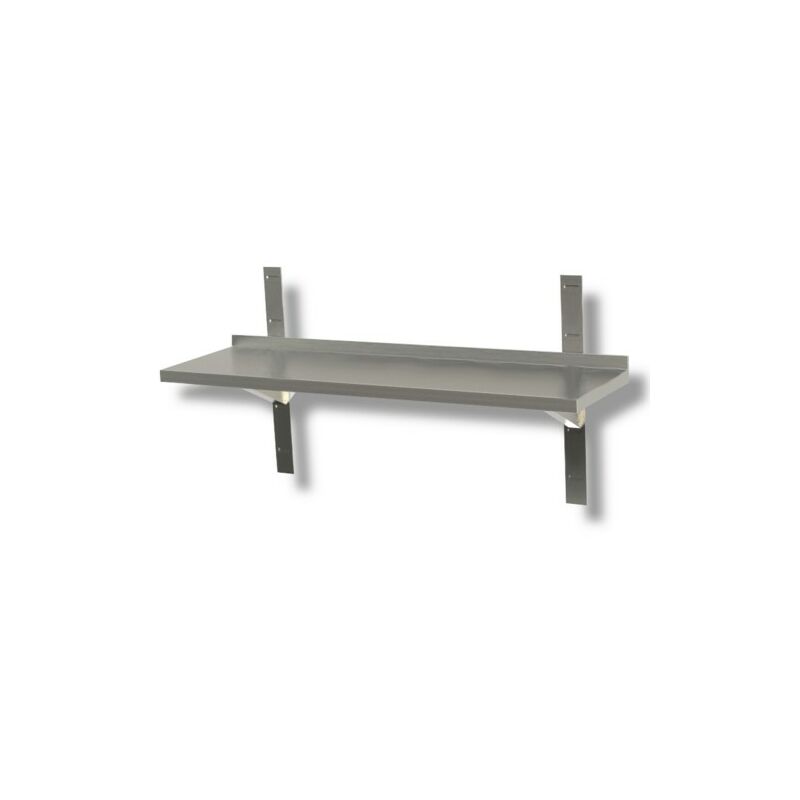 Codice RS7564 - Ripiano singolo fissaggio a parete modello RP-DSME143, dimensioni cm. 140x30x4 (lxpxh), altezza totale cm. 70. Realizzazione in acciaio inox. Mensola regolabile in altezza tramite cremagliera. Fornito in kit smontato.