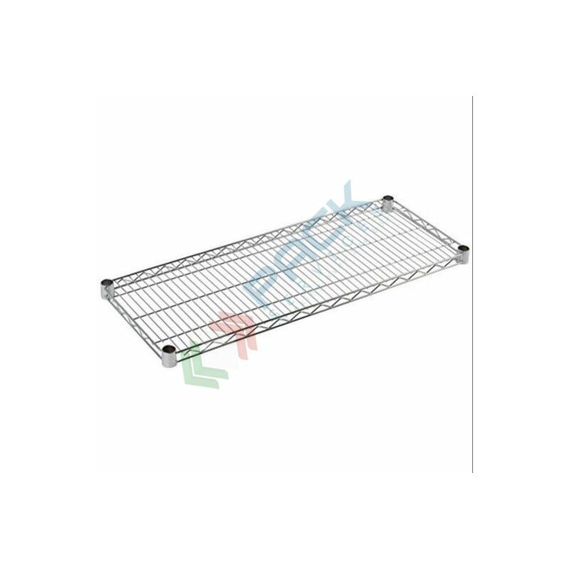Ripiano in filo d'acciaio cromato, Mis. 35 x 75 cm, completo di guancette per il fissaggio ai tubolari. Può essere regolato all'altezza desiderata in corrispondenza delle apposite scanalature presenti sui tubolari montanti (ogni 2,5 cm). Portata massima: 100 kg (distribuiti).