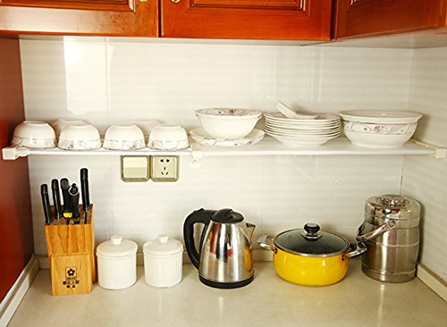 Lunghezza regolabile: il ripiano può essere regolato allungandolo telescopicamente fino alla lunghezza desiderata, non c'è bisogno di usare chiodi né colle.