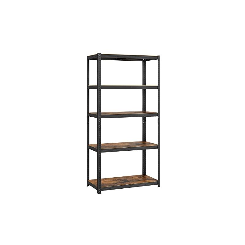 Costruzione robusta - I robusti ripiani in truciolato sono supportati da un telaio in acciaio con barre di rinforzo aggiuntive, ogni ripiano può sostenere fino a 175 kg e contenere in modo sicuro vernici, attrezzi e attrezzature per il fitness [Aspetto rustico] I ripiani della libreria sono rifiniti in legno marrone rustico venature, aggiungendo un effetto elegante a qualsiasi spazio, così puoi dire addio all'aspetto noioso [Diviso in 2 unità] La libreria può essere divisa in due ripiani bassi separati, uno posizionato in cucina come ripiano per il forno e il microonde, l'altro nello studio per riporre libri, piante, stampante e non solo [Ripiani regolabili] Non sono necessari strumenti per assemblare il ripiano portaoggetti, le parti possono essere collegate insieme utilizzando giunti a fessura e l'altezza tra i ripiani può essere regolata per uno stoccaggio flessibile [ Kit antiribaltamento] Il kit antiribaltamento incluso ti aiuta a fissare lo scaffale al muro, rendendo lo scaffale