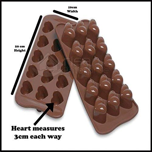 STAMPI IN SILICONE CIOCCOLATINI: Forme per cioccolato che misurano ognuna 3x3 cm, mentre lo stampo in silicone in totale è lungo 20 cm e largo 10 cm. Ottimo per creare fino a 15 deliziose praline a forma di cuore, per cake design.
