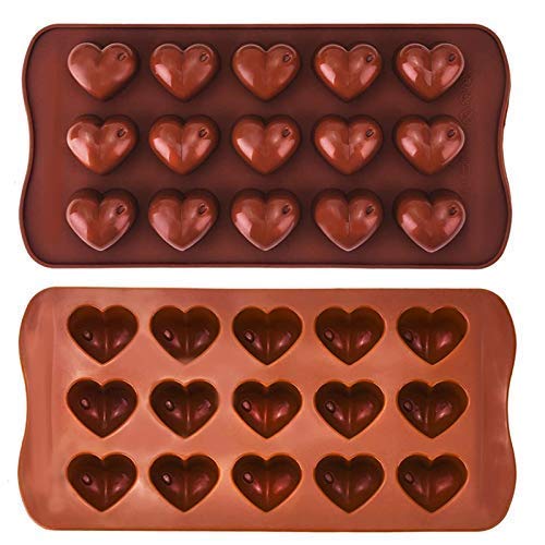 Risai Stampo Cioccolatini Cuore, 15 Cuore Stampi in Silicone per Dolci Dolce, Stampo in Silicone Alimentare, Stampo ghiaccio adatto anche per Gesso, Saponette Stampo per Cera e Candele