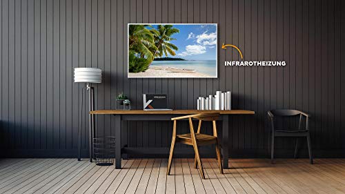 Riscaldamento elettrico a infrarossi con 18 diverse foto (vedi immagine), con termostato digitale, con spina per presa, con protezione da surriscaldamento - viene fornito con un certificato di sicurezza della Società tedesca degli ingegneri - i nostri dispositivi sono approvati per la sicurezza da TÜV e/o Società di ingegneri riconosciute, riscalda secondo il principio solare - si riscalda in lunghezza d'onda ottimale compresa tra 8-15µ - cornice bianca, 7, 130 Watt