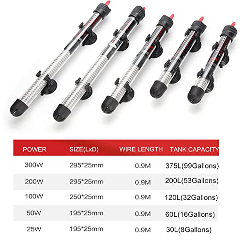 LLPP Riscaldatore per Acquario per Acquario, termostato a Temperatura Regolabile, riscaldatore ad Acqua per Acquario sommergibile con Asta riscaldante, 25W/50W/100W/200W/300W