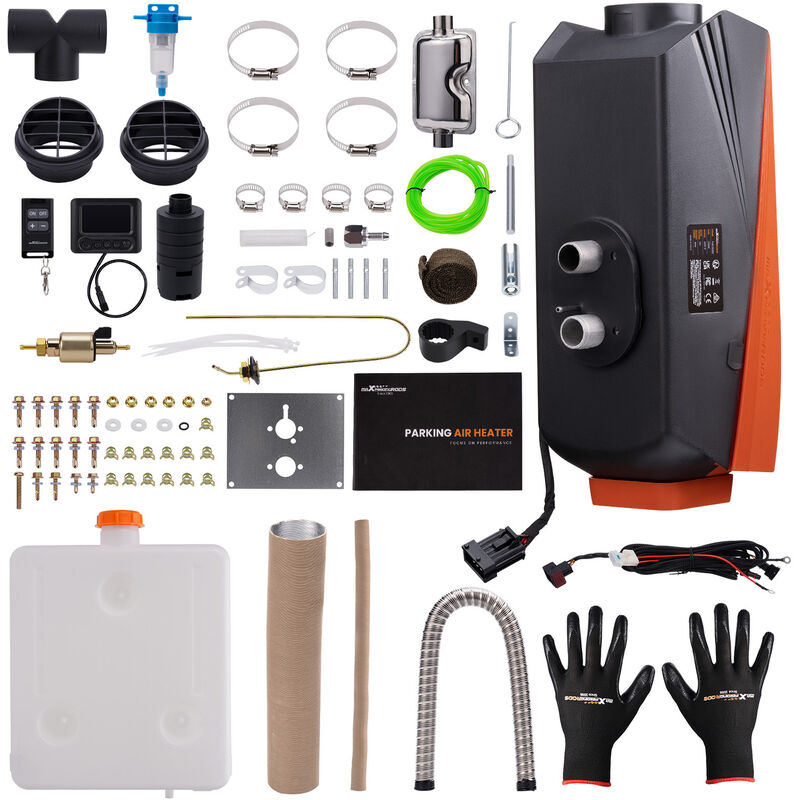 Ultime notizie! Sono arrivati i riscaldatori d'aria aggiornati! 1. 3 metodi per iniziare. LCD, telecomando e controllo APP. -Il nuovo controller supporta una distanza controllabile di 80 m, molto migliore rispetto ai 30 m della vecchia versione, e può essere presente in tutta la parete. -Il display supporta la funzione di ventilazione. 2. Moblie APP, Intelligent & Facilitation. - Blue-tooth disponibile 3. supporto per la regolazione automatica dell'altitudine. -Regola automaticamente la quantità di carburante in base alla diversa altitudine, non è più necessaria la regolazione manuale, risparmiando 200 dollari su un kit per alta quota. 4. basso consumo di carburante e di energia . - È adatto per il funzionamento a lungo termine, 10L diesel possono durare circa 20 ore a caldo. 5. Riscaldamento rapido e rapida rimozione della brina dalle finestre. 6. pompa del carburante lavabile per una lunga durata della pompa. 7. nastro adesivo per scarichi -Resiste a temperature elevate di circa