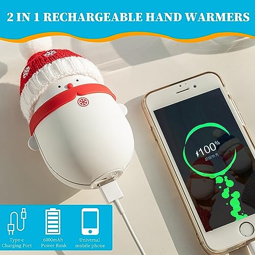 Riscaldatore Elettrico Tascabile, Scaldamani Elettrico Ricaricabile, 6000mAh Scaldino USB Riutilizzabile, Scalda Mani Portatile Elettrico Tascabili Power Bank, Scaldamani di Pupazzo di Neve