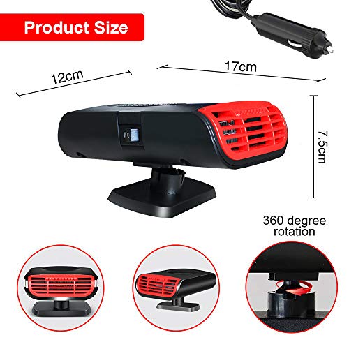 Riscaldamento e raffreddamento: in soli 5 secondi, il riscaldatore per auto può rimuovere rapidamente la nebbia o il gelo del parabrezza dall'auto riscaldando l'aria. Può essere utilizzato anche come ventilatore per auto per raffreddare la tua auto in estate. Lasciatevi godere la fresca estate e il calore dell'inverno.
