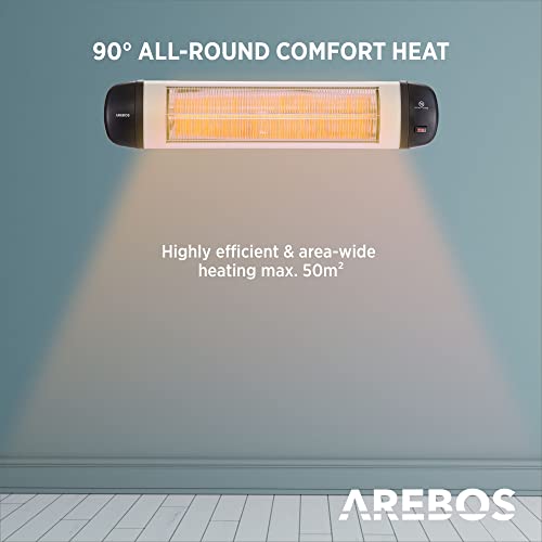 [Potente] Con una potenza di riscaldamento di 2500W questa stufa è molto potente. La tecnologia a infrarossi rende questa stufa radiante di AREBOS estremamente efficiente: il calore non si irradia nell'aria dell'ambiente ma verso le persone nelle vicinanze.