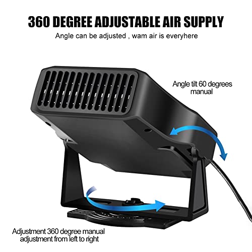Riscaldatore Per Auto,Trpambvia 12V 120W Riscaldatore D'Aria Portatile Per Auto 2 In 1 Ventola Di Riscaldamento E Raffreddamento Rotante A 360 ° Sbrinatore Per Finestrini E Parabrezza