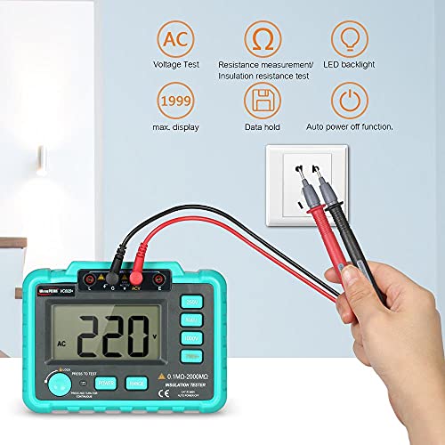 Risegun Misuratori di Resistenza di Isolamento - VC60B+ Tester di Resistenza di Isolamento Digitale LCD Megaohm Meter Megaohmmeter DC250V/500V/1000V