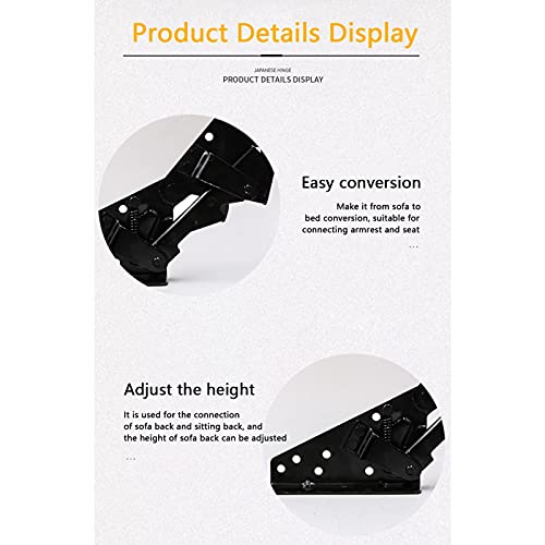 Materiale premium: la nostra cerniera per mobili è realizzata in materiale metallico di alta qualità che adotta una buona funzione antiruggine e una forte capacità di carico per collegare il divano posteriore e il sedile posteriore, l'altezza del divano posteriore può essere regolata.