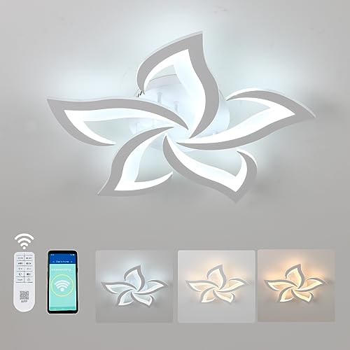 Riserva Plafoniera LED Soffitto Moderna Dimmerabile, 40W 4700LM Lampada da Soffitto con Telecomando/APP, Creativo Forma Di Fiore Lampadario in Acrilico Adatta Per Soggiorno, Camera Da Letto, Cucina