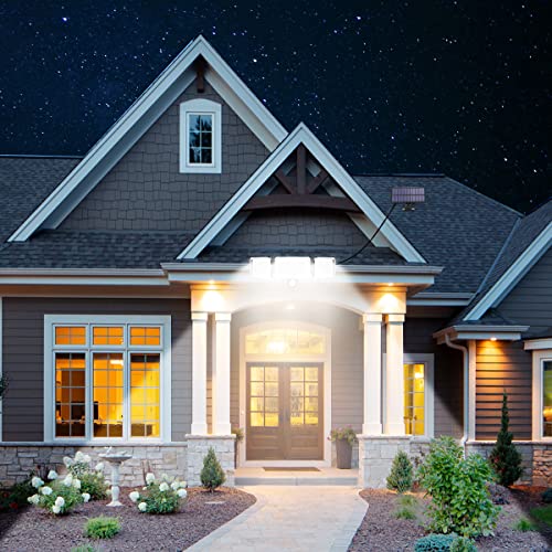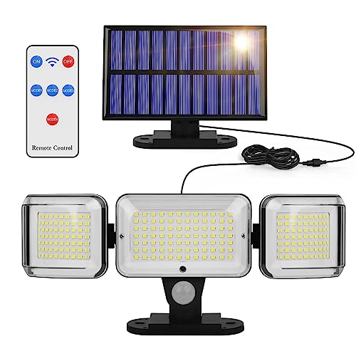 Riserva Luce Solare Led Esterno con Sensore di Movimento, 224LEDs/4Modes, IP65 Impermeabile Lampada Solare Esterno 3 Teste, 5m Cavo, Faretto Solari da Esterno con Telecomando per Percorso Giardino