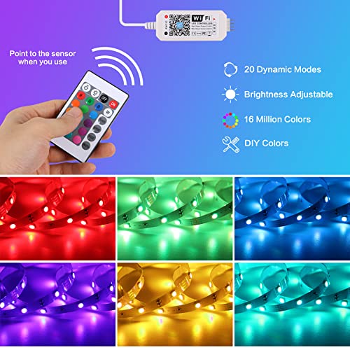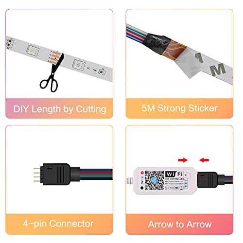 Riserva Striscia LED Smart 5M, WIFI Strisce LED Colorati 5050 RGB 12V Compatibile con Alexa e Google Assistant, App Controllato Musica, Strip LED con Telecomando IR, per Casa TV Festa Bar Natale
