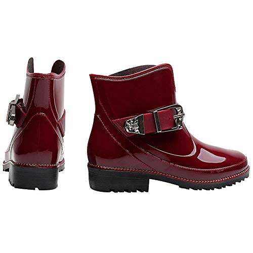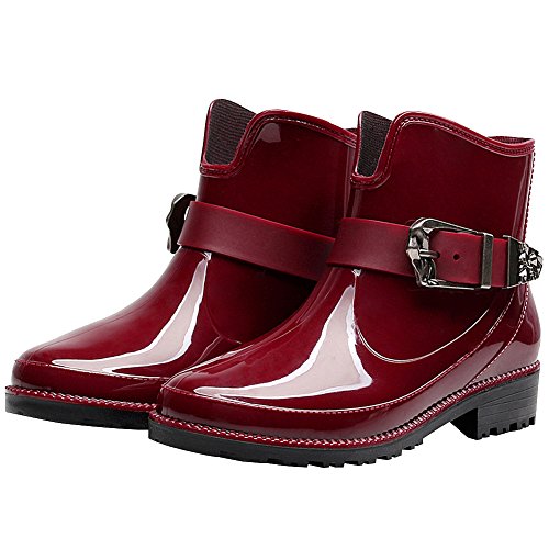 Rismart Donna Caviglia Alto Casuale Pulsante Neve Impermeabile Scivolare-su Stivali da Pioggia SN02013(Mogano,EU38)