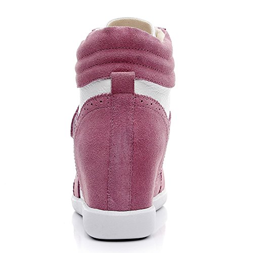 Rismart Donna Tacco a Zeppa Hook&Loop Brogue Alto Cima Confortevole Elegante Sneaker Scarpe SN8599(Rosa&Bianco,EU39)