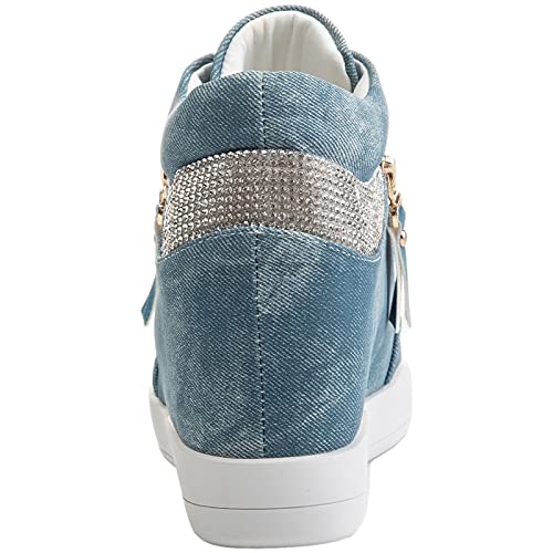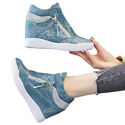 Rismart Donna Zeppa Piattaforma Bootie Elegante Sneaker Scarpe SN15018(Denim Blu,36 EU)