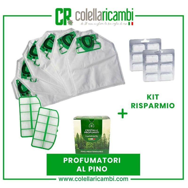 Kit Risparmio ricambi compatibili per Vorwerk Folletto VK200 della durata di 2 anni . Contenuto della confezione: 12 Sacchetti adattabili di ottima qualità 12 Profumatori 2 Filtri griglia protezione motore adattabili di ottima qualità 1 Confezione da 6 bustine al Pino da 50g Prodotto certificato di qualità tedesca . Spedizione in tutta Italia in sole 24/48 ore lavorative. Per qualunque informazione non esiti a contattarci. ACCESSORIO COMPATIBILE CON I SEGUENTI MODELLI DI FOLLETTO