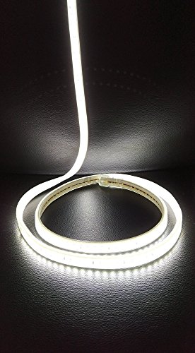 Impermeabile (IP67), LED 5730, 120 LED per metro, consumo effettivo di 10 W per metro, 950 lumen per metro.
