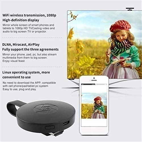 Non c'è bisogno di APP e nessun driver richiesto: Modulo incorporato 2.4Ghz WiFi, senza bisogno di APP senza autista. Semplicemente godersi i media sul grande schermo in 3 fasi: plugin - collegare -Specchio. Collegare l'adattatore alla porta HDMI, selezionare il canale HDMI appropriato, collegare il cavo USB al alimentatore esterno (caricatore del telefono cellulare), ed infine accoppiarlo con il dispositivo mobile ..