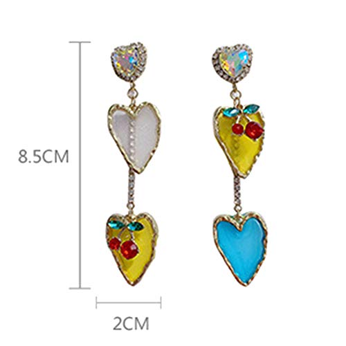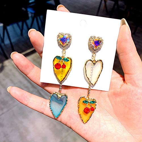 RIsxffp Party Donna Rhinestone Intarsio in Acrilico Cuore Cherry Long Pendente Pendente Hook Stud Orecchini Diario Ufficio Accessori Gioielli Cuore