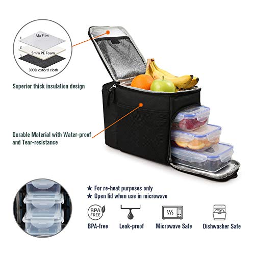 la fodera interna è extra imbottita con schiuma per una grande resistenza termica. Il design di isolamento spesso superiore può mantenere il cibo fresco o caldo. 2 confezioni di ghiaccio incluse per rendere il cibo più fresco e fresco. In ogni scomparto separato, è possibile mettere diverse temperature controllate.