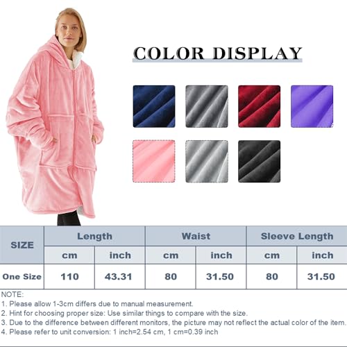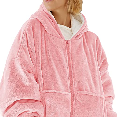 RITOSTA Felpa con Cappuccio Donna Oversize Pullover Blanket Hoodie Manica Lunga Gigante Super Morbida Calda e Confortevole Coperta con Tasca Sweatshirt Cappotto(Rosa,Taglia Unica)