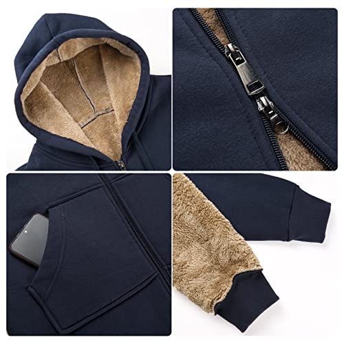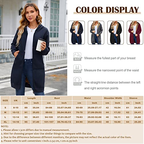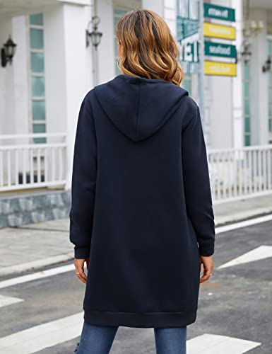 RITOSTA Felpe con Cappuccio da Donna Felpe Donna con Cappuccio Lungo Felpa Pile Donna con Zip Felpa Lunga Donna con Cerniera Donna Manica Lunga Cappotto con Tasche per Invernale(Blu Navy,XXL)