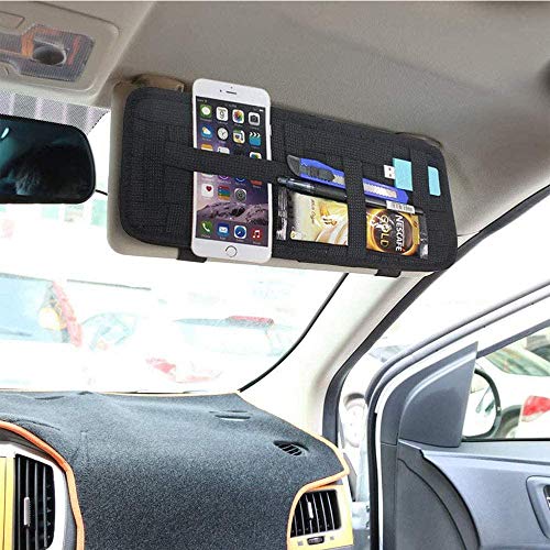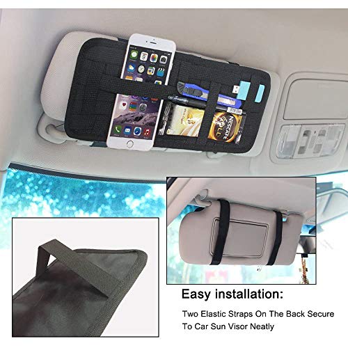 Funzione Mutil: Ottimo organizer per accessori per visiera parasole perfetto per riporre carte, patente di guida, pennello per trucco, occhiali da sole, telefono, chiavi, portafogli, documenti, auricolari. È un grande aiuto come borsa portaoggetti per la tua auto.