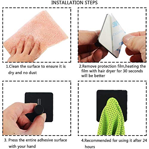 Ritte 4 Pezzi Gancio a Muro Per Cucina, Ganci Appendiabiti, Gancio in Acciaio Inossidabile, Nessun Gancio Del Foro, Impermeabile e Antiruggine Per Bagno, Toilette e La Cucina (Nero)