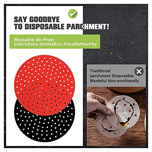 【Qualità che conta】 Il set di rivestimento per friggitrice ad aria è realizzato utilizzando solo silicone alimentare senza fare affidamento su BPA o plastica. Queste alternative di carta pergamena per friggitrice ad aria in silicone, misurano 8 pollici (nero) 9 pollici (rosso) e offrono un'elevata resistenza al calore (450 ° F / 230 ° C) pur essendo resistenti e flessibili per gestire l'uso quotidiano.