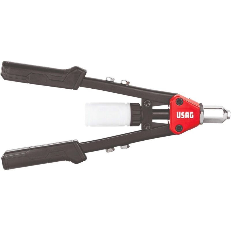 USAG 995 LA RIVETTATRICE DIRITTA COMPATTA PROFESSIONALE MANUALE A LEVA CARATTERISTICHE: Modello compatto con la stessa capacità di una rivettrice lunga standard Il sistema di leve interno riduce lo sforzo dell'operatore Adatta a rivetti in alluminio ed acciaio 5 testine intercambiabili Serbatoio amovibile per recupero steli Corpo in lega leggera Manici in materiale plastico PER RIVETTI DAL 2,4 AL 4,8