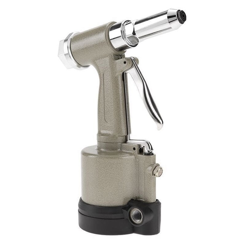 Rivettatrice ad aria compressa, potente, facile da utilizzare e dal peso contenuto con quattro ugelli differenti intercambiabili. velocit� operativa, robusto cilindro esagonale, bassa rumorosit� e corpo in alluminio super resistente. Caratteristiche tecniche - Pressione di utilizzo (bar): 6,2 bar - Consumo medio aria (L/ciclo): 0,90 - Lunghezza della corsa (mm): 14 - Potenza di trazione (kg): 720 - Capacitàmassima rivetti (mm): 4,8 - Dimensione ugelli per rivetti (mm): 2,4 - 3,2 - 4.0 - 4,8 - Dimensioni rivettatrice LxPxA (mm): 280x100x180