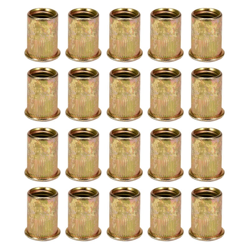 DADI RIVETTI IN ACCIAIO YATO. Il collare del rullo è zigrinato, il che lo fissa più saldamente all'elemento. I dadi per rivetti consentono di avvitare una vite o un bullone con filettatura metrica nella lamiera o in altri materiali dove la filettatura non è possibile.