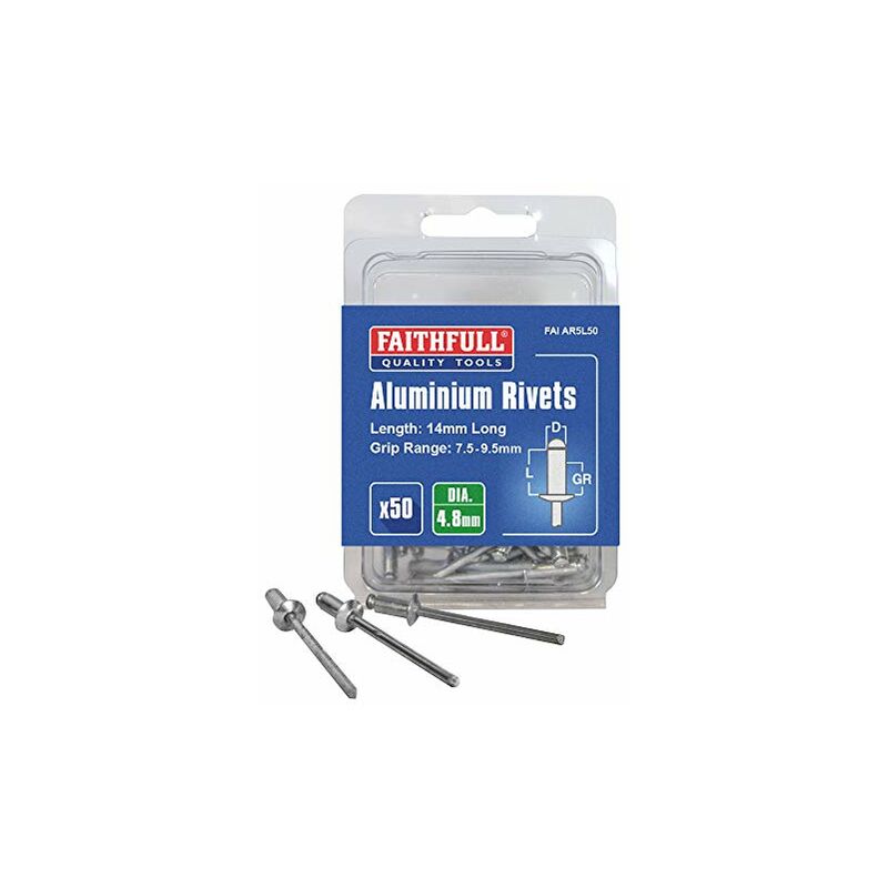 FAITHFULL Rivetti in alluminio 5 millimetri pacchetto lungo 50 5mm Long