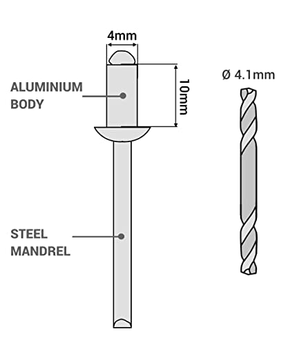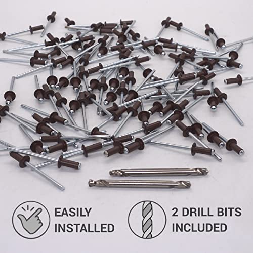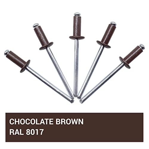 ✔️ Confezione: 500 rivetti ciechi e due punte da trapano da 4,1 mm di diametro. Colore: marrone cioccolato (RAL 8017). Dimensioni dei rivetti: 4,0 x 10 mm;