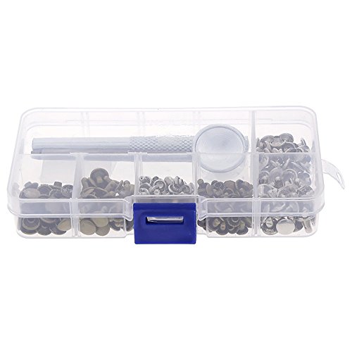 Rivetti doppio tappo, 120 Set Cap Rivetti Tubolari in metallo Studs con 3 pezzi Strumento di fissaggio per fai da te Craft in pelle, Rivetti Sostituzione 6 * 6mm / 8 * 8mm / 8 * 12mm, 3 Dimensioni