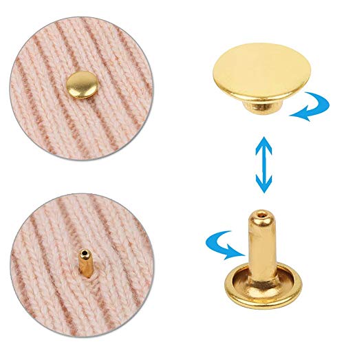 Set Rivetti in Pelle,100 Pezzi Rivetti Pelle Doppio,Doppio Cappuccio Rivetto,Rivetti Cuoio Ottone,per Portafogli,Borse,Pelle,DIY,Mestiere Riparazione Decorazione,4 Taglie(Oro)