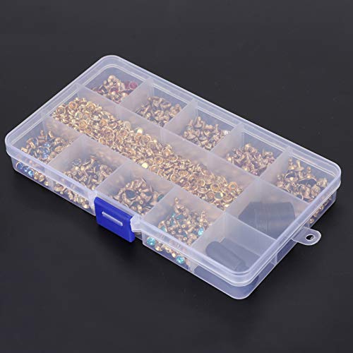 Con scatola: tutti i rivetti sono confezionati in una scatola trasparente, comoda da trasportare e riporre. Gli strumenti di regolazione dei rivetti facilitano il lavoro con la pelle.