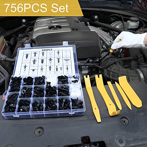 756 pz Rivetti in plastica per auto, TedGem 18 Dimensioni plastica Rivetti Set per Morsetti paraurti Clip di Fissaggio, con Strumenti per Rimozione, di Elementi Fascette e Tappetini Spugna