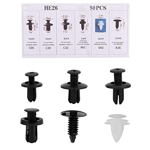 Facile da usare: la clip in plastica da 50 pezzi è un ottimo sostituto della clip per paraurti originale. Sostituire le viti durante il funzionamento,facile da montare senza attrezzi,facile da riparare,facile da riparare,migliorando notevolmente l'efficienza produttiva