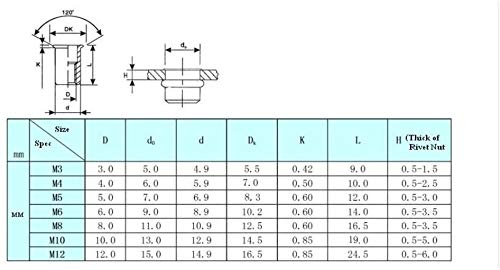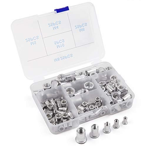 100 dadi per rivetto in alluminio filettato: 25 x M4, 25 x M5, 25 x M6, 25 x M8