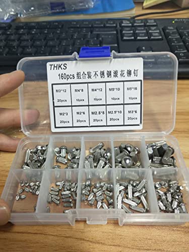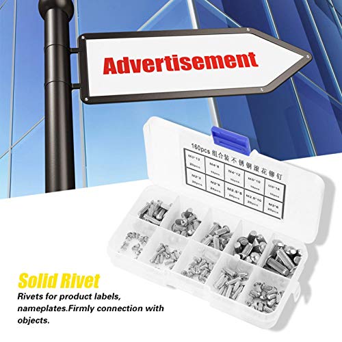 Rivetto 160 pezzi Rivetto in acciaio inossidabile M2/M2,5/M3/M4/M5 Assortimento di rivetti a testa tonda