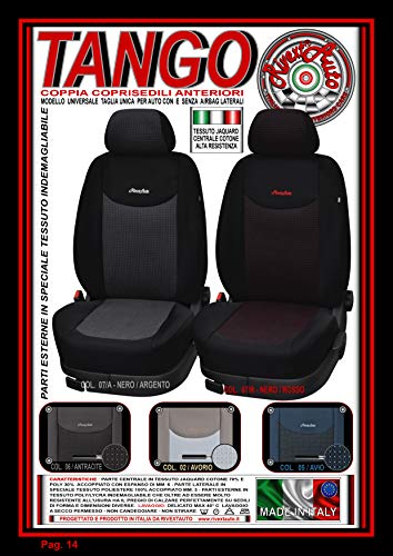 Coppia coprisedili anteriori universali Tango per auto con e senza airbag laterali
